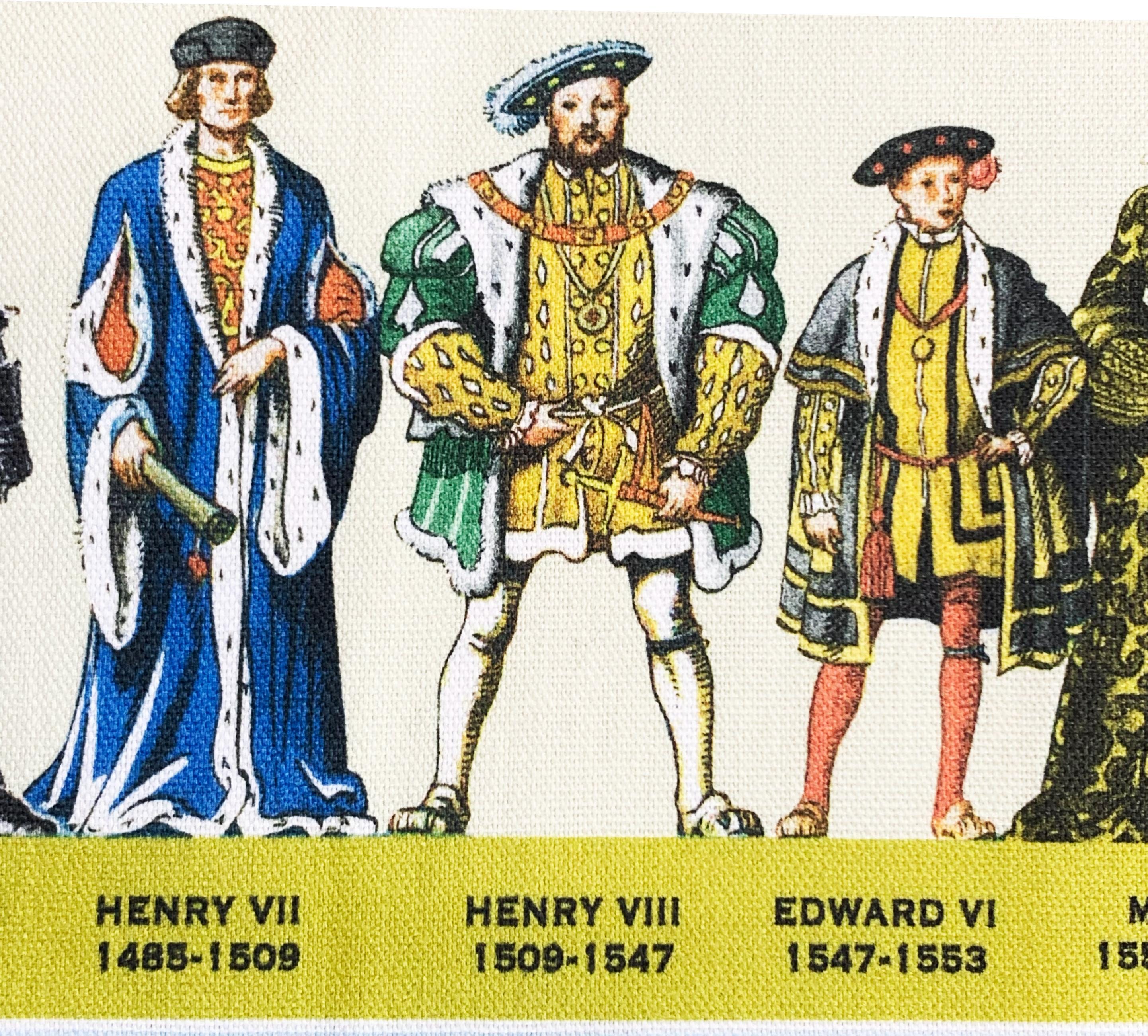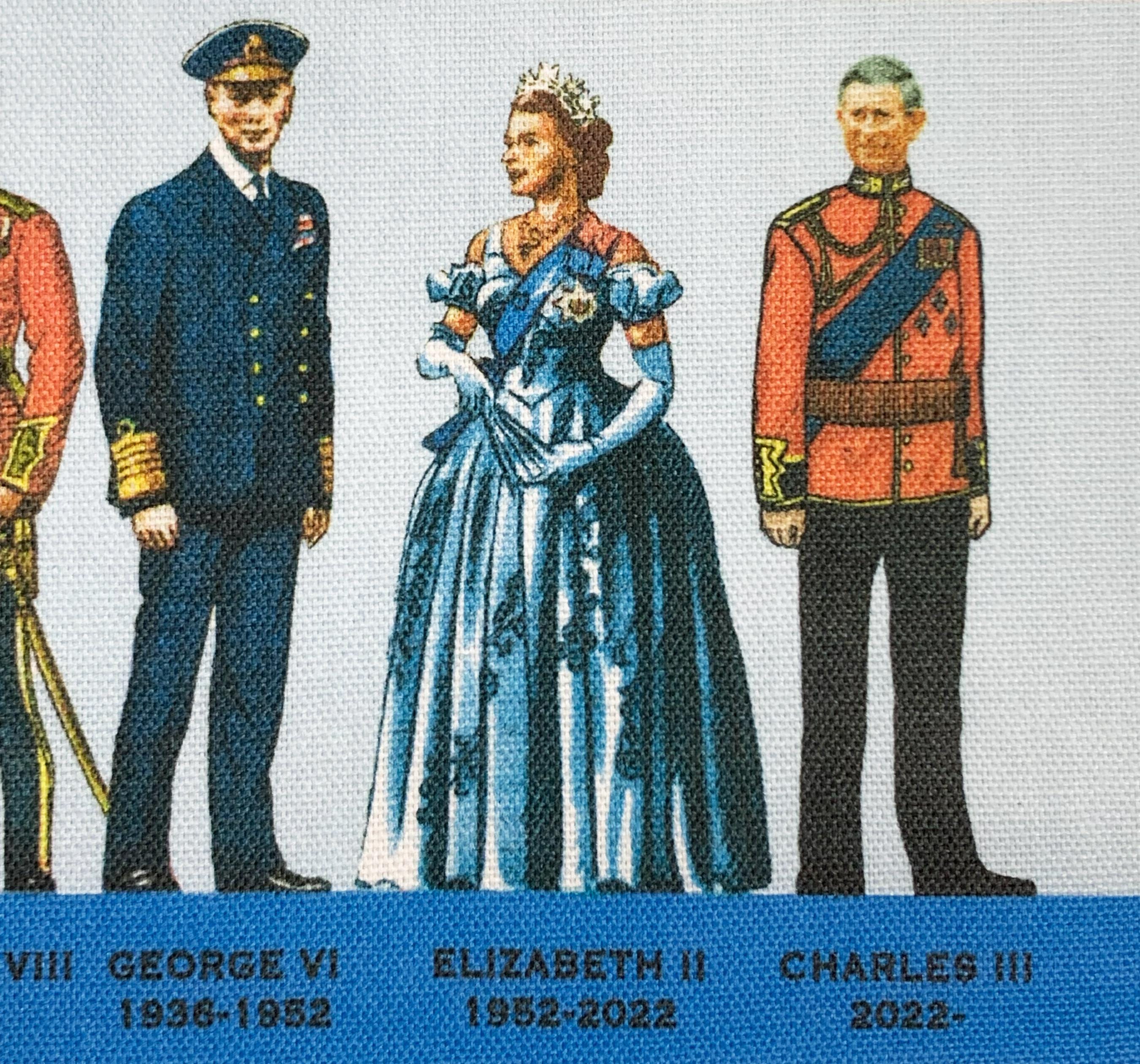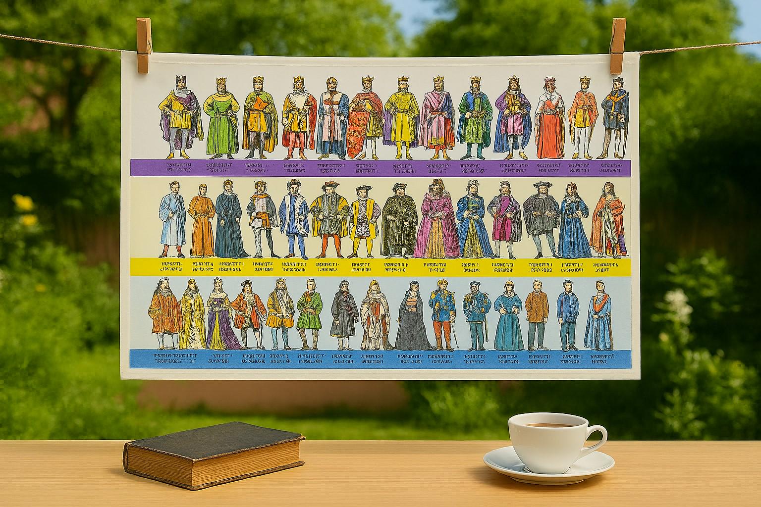 Kings and Queens Large Cotton Tea Towel by Half a Donkey. From William I in 1066 through to King Charles III. All of the monarchs have the years of their reign underneath them. Made from 100% cotton, hemmed on four sides. Cotton is high quality 185gsm. The dimensions of the Tea Towel are: 47cm (w) x 65cm (h). From the Series 1 The Original Line by Half a Donkey