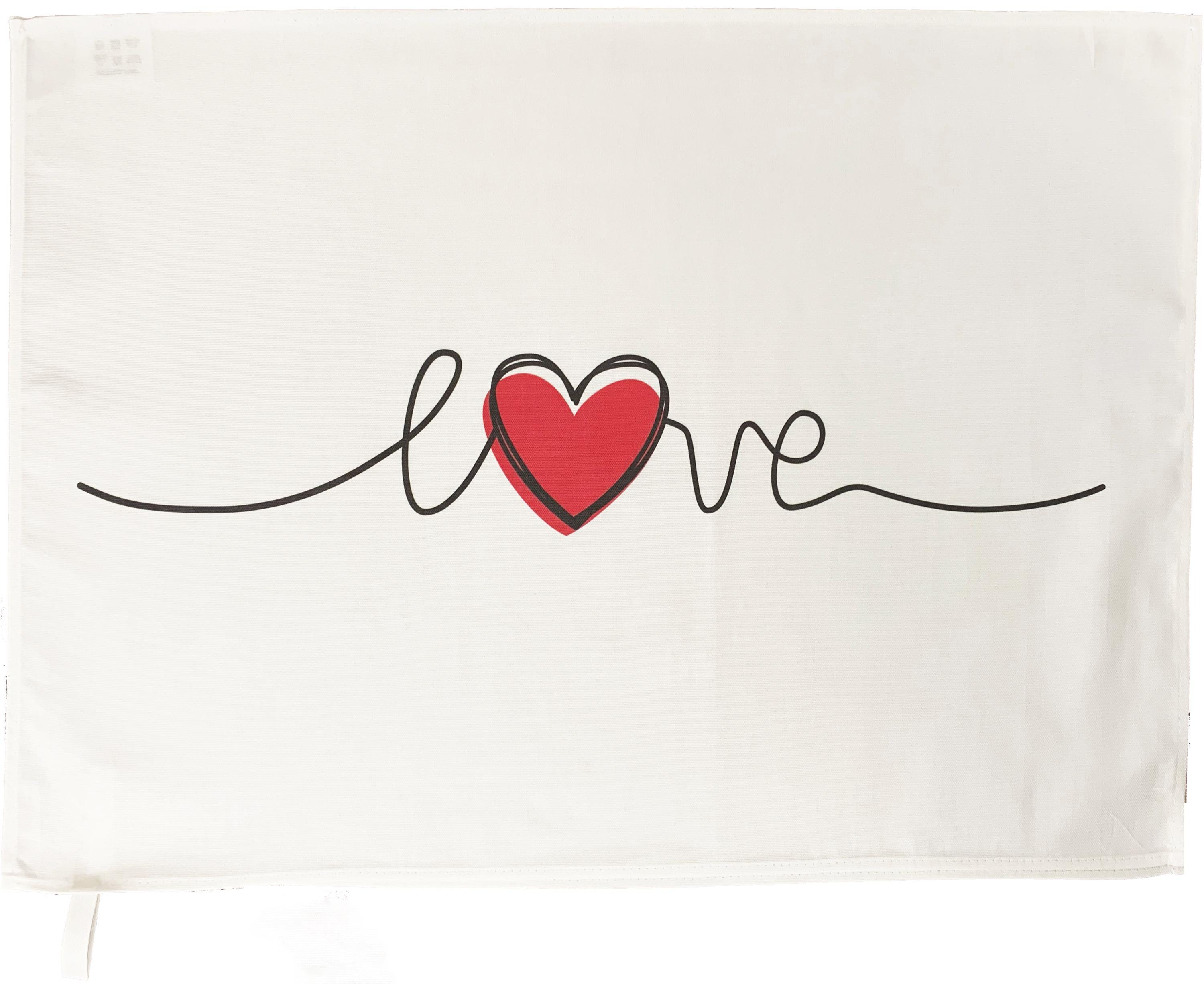 This charming large cotton tea towel from Half a Donkey brings a touch of warmth and personality to your kitchen. Featuring a delightful 'Love' design with a red heart motif, this generously sized tea towel measures 65 centimetres in length by 47 centimetres in width, providing ample coverage for drying dishes, glassware, and cookware. Crafted from quality cotton fabric, it offers excellent absorbency whilst remaining gentle on your kitchenware. The natural white colour creates a clean, fresh aesthetic that complements any kitchen décor. Proudly made in the UK, this tea towel showcases British craftsmanship and attention to detail. The sturdy cotton construction ensures durability through repeated use and washing, whilst the woven texture provides effective drying performance. Whether you're looking to add a cheerful accent to your own kitchen or searching for a thoughtful gift, this love-themed tea towel combines practicality with charm, making everyday kitchen tasks just a little bit brighter.