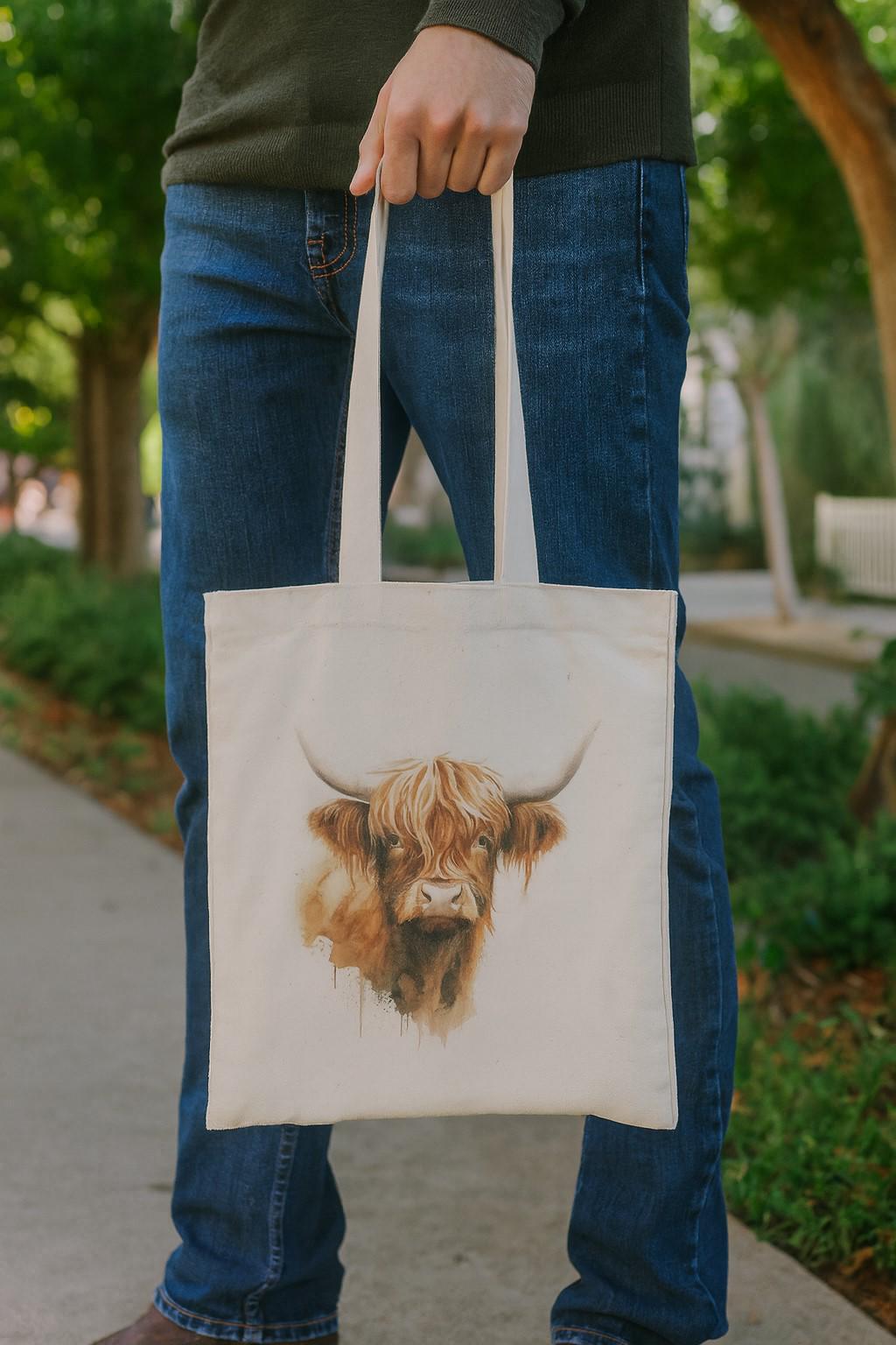 Show off your love for rustic charm with this beautifully illustrated Highland cow tote bag. Crafted from lightweight 140g white cotton, this bag features a striking watercolour-style cow design printed on both sides. Perfect for everyday errands, market strolls, or countryside adventures.