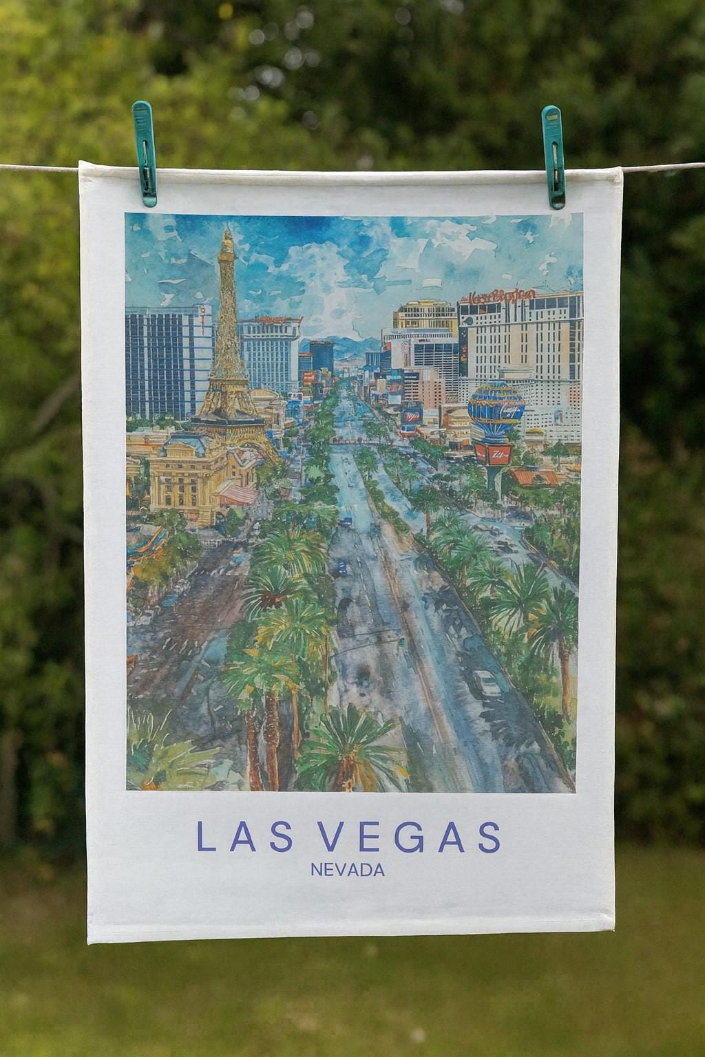 Las Vegas Nevada Cotton Tea Towel, White, 47 x 65 cm, with Hanging Loop