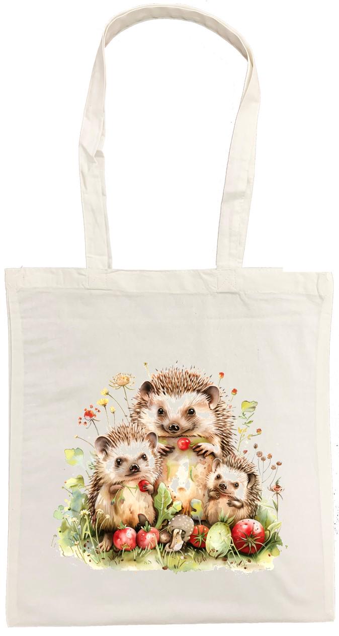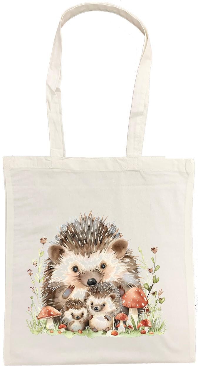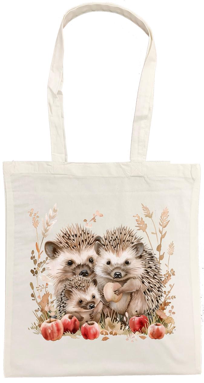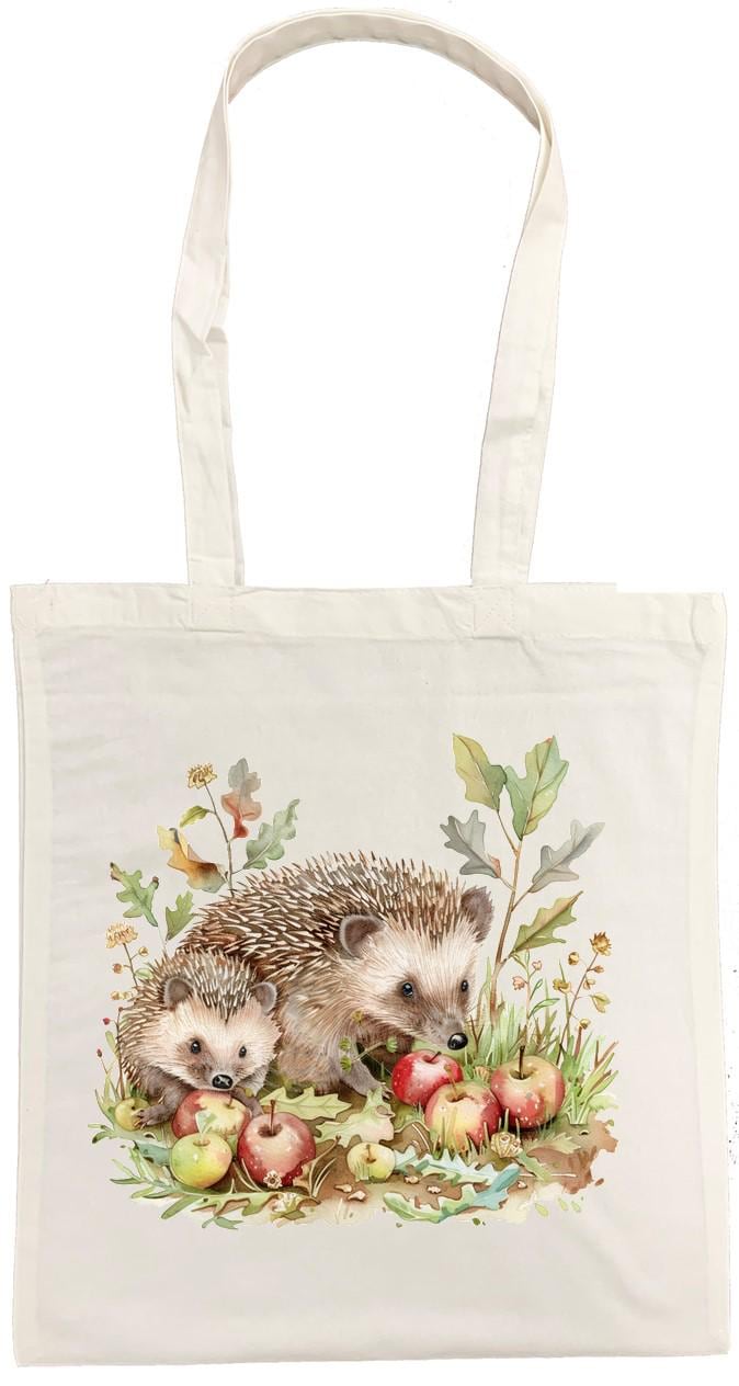 This charming cotton tote bag features an enchanting watercolour illustration of hedgehogs surrounded by autumn apples and foliage, printed on both sides for a delightful look from every angle. Crafted from 100% cotton, this versatile bag measures 38 x 43 centimetres, providing ample space for your daily essentials, shopping trips, or weekend adventures. This unisex tote combines functionality with artistic appeal. The bag is conveniently machine washable at 30 degrees Celsius for easy care—simply avoid tumble drying and iron on the reverse side to preserve the beautiful print. Weighing just 182 grams, this lightweight yet sturdy tote is perfect for adults seeking a practical accessory with a touch of whimsical nature-inspired artistry. Whether you're heading to the market, library, or simply out for the day, this hedgehog-themed tote bag adds character to any outing.
