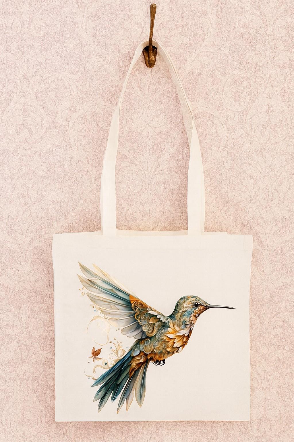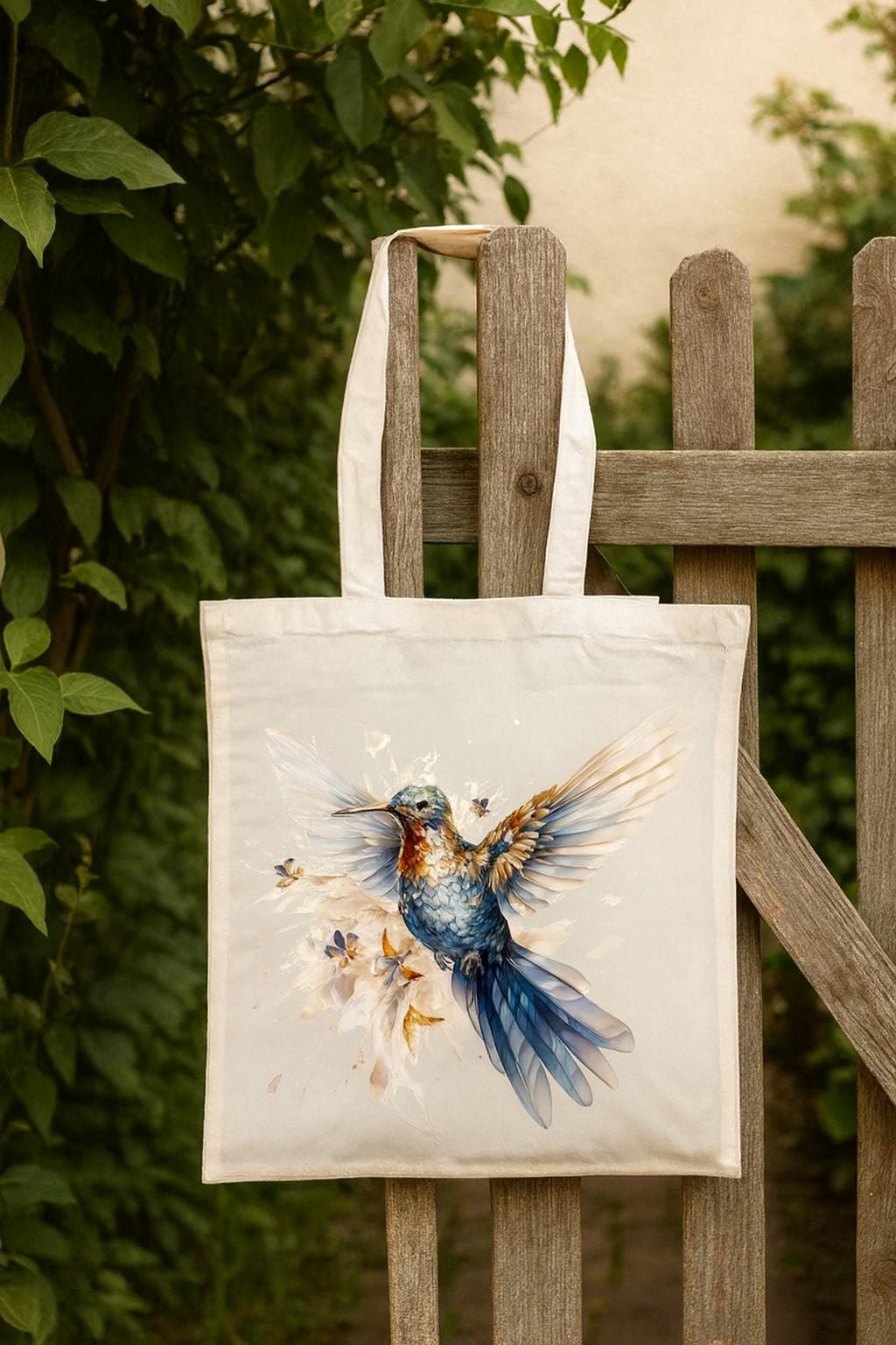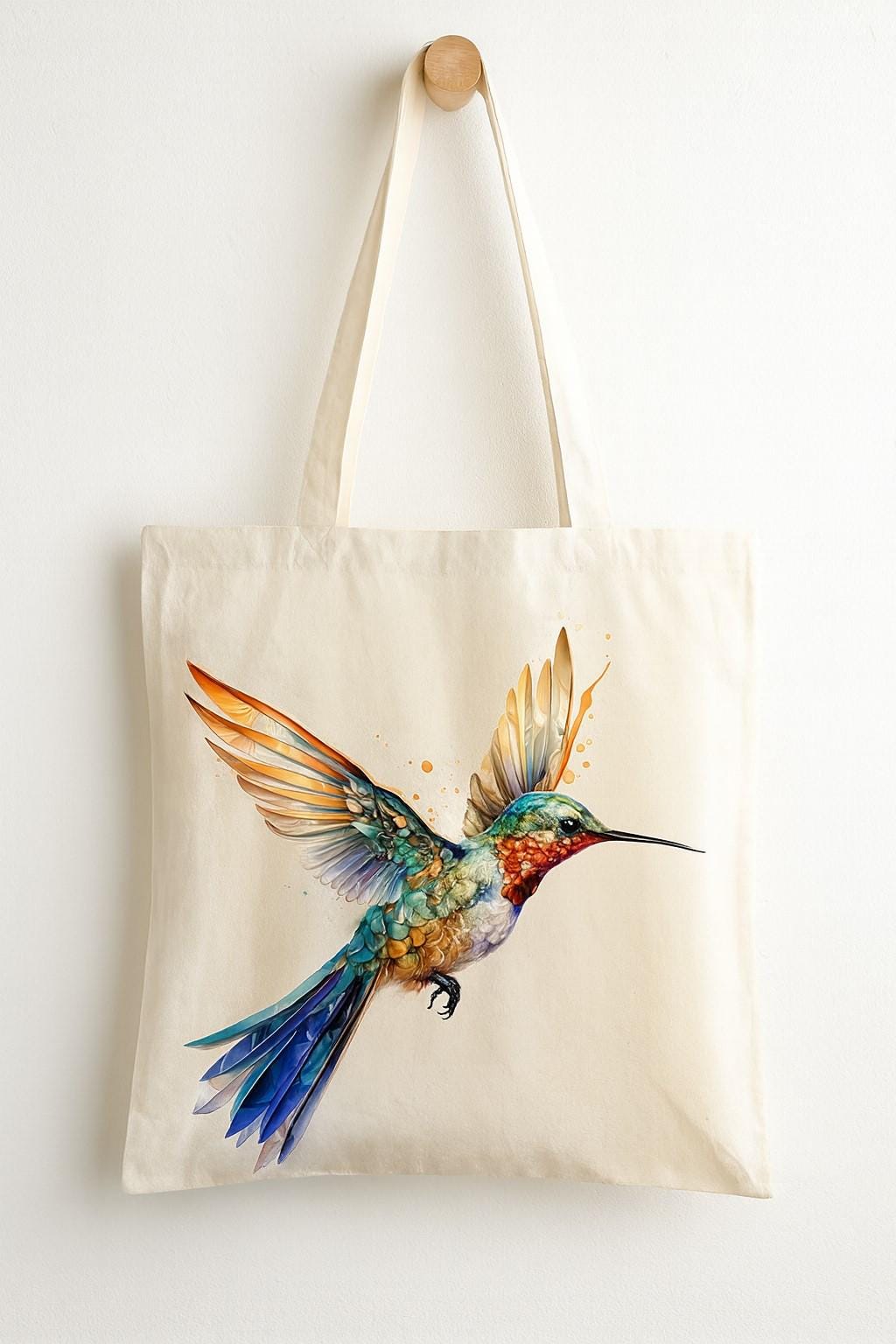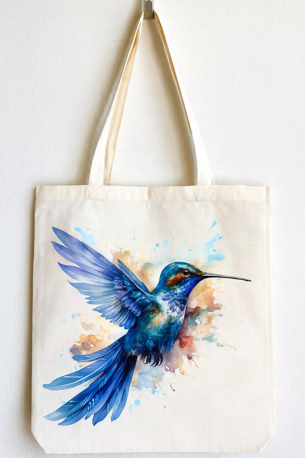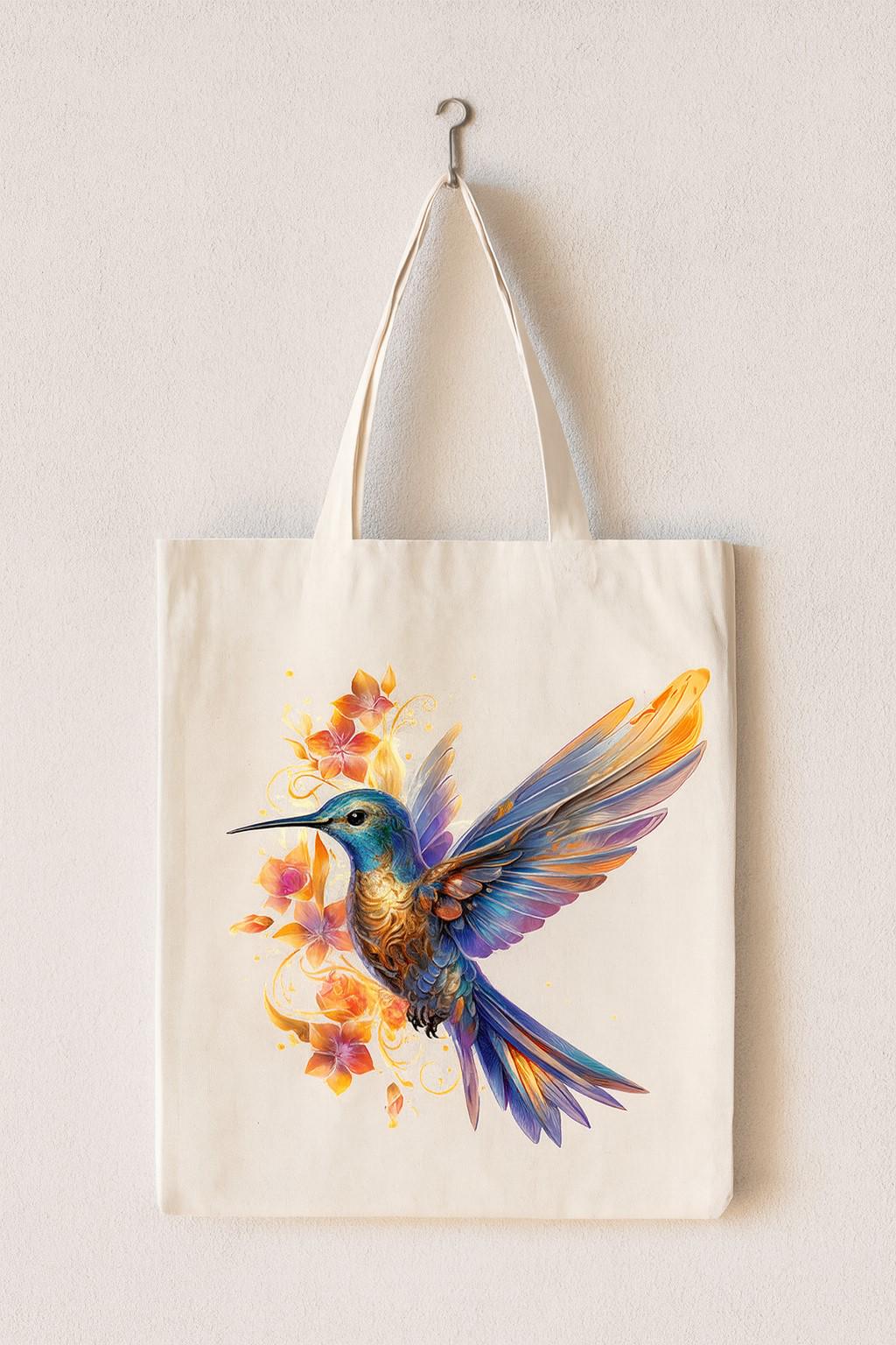 These versatile cotton tote bags features a stunning artistic hummingbird design printed on both sides, making it a beautiful accessory for any occasion. Measuring 38 x 42 centimetres, this spacious bag is crafted from 100% cotton , offering durability and a natural feel that's perfect for everyday use. The double cotton handles provide comfortable carrying, makes it ideal for shopping, trips to the beach, or carrying your daily essentials. The unisex design suits all adults, and the vibrant hummingbird artwork adds a touch of artistic flair to this functional accessory. Weighing just 182 grams, it's lightweight yet sturdy enough for regular use. Care is simple—machine washable at 30 degrees Celsius, though tumble drying should be avoided and ironing should be done on the reverse side to protect the beautiful print. Whether you're heading to the market or need a stylish everyday bag, this cotton tote combines practicality with eye-catching design.