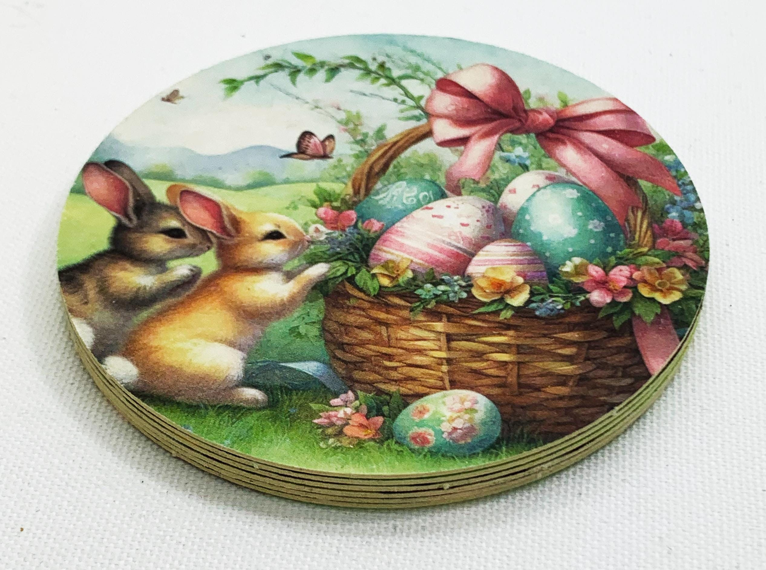 Transform your Easter celebrations with this delightful set of 12 paper placemats and 6 beer mats. Both printed on both sides