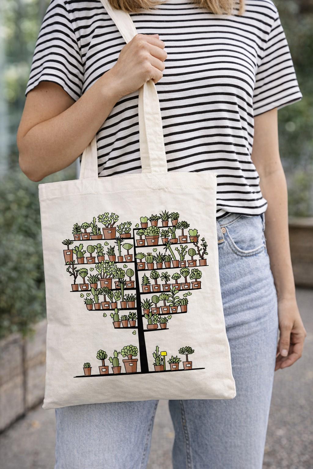 Bring a little garden magic wherever you go with this charming canvas tote bag. rinted on both sides. Featuring a playful tree made entirely of tiny potted plants, this design is perfect for plant lovers, gardeners, and anyone who enjoys a touch of nature‑inspired whimsy in their everyday style.