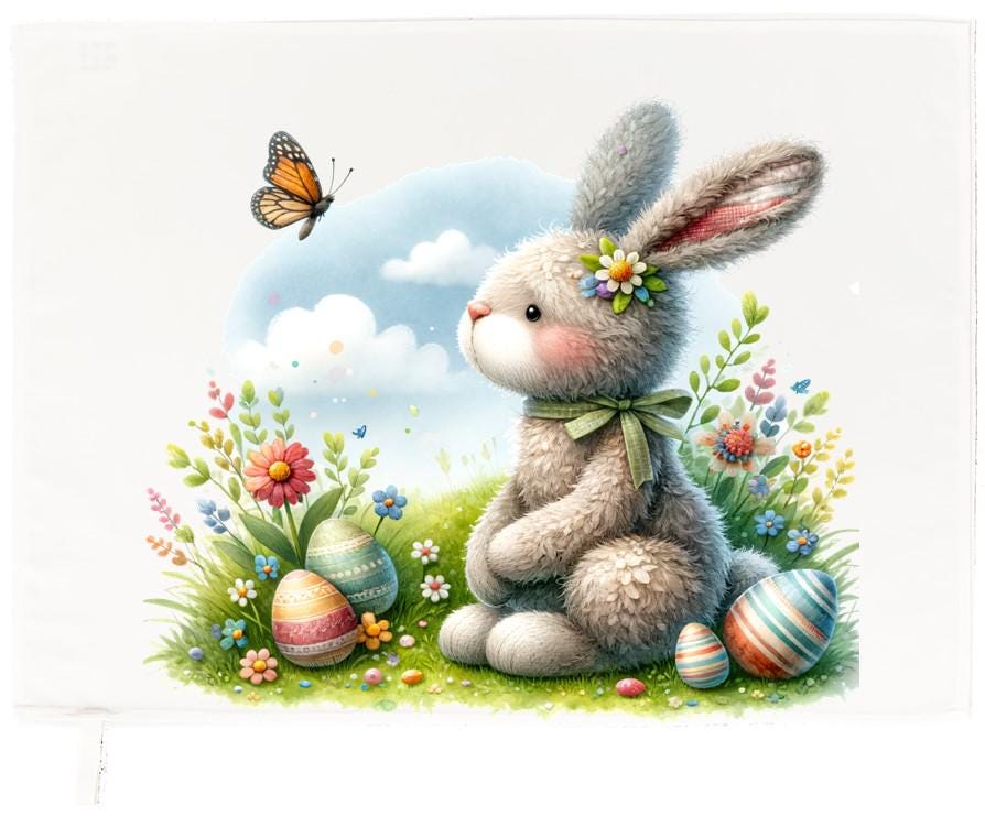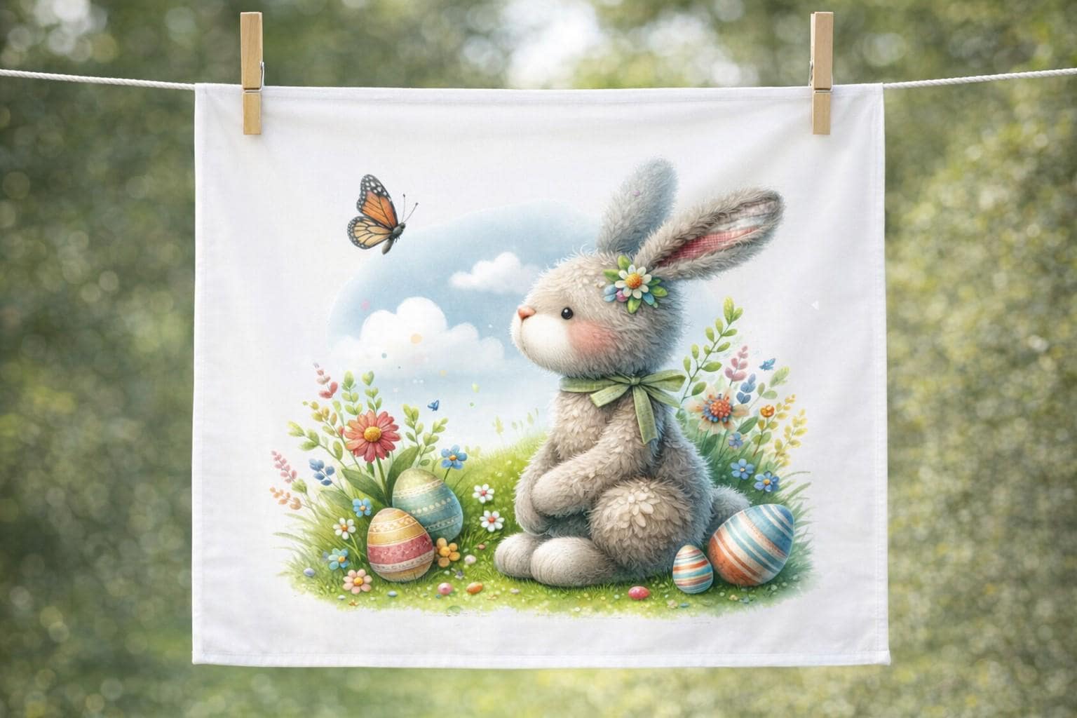 Sitting Easter Bunny Cotton Tea Towel, White, 65 x 47 cm
