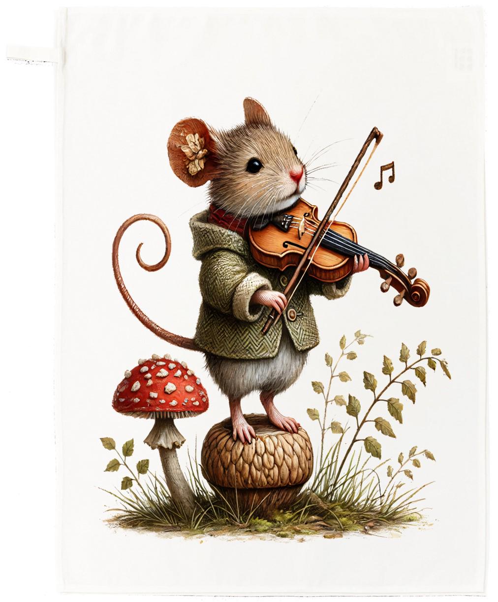 Bring some charm to your kitchen with this delightful tea towel from Half a Donkey, featuring an enchanting illustrated mouse perched atop an acorn, playing the violin amidst toadstools and woodland foliage. The intricate, storybook-style artwork makes this a truly unique addition to any home. Crafted from 100% cotton in a plain weave, this generously sized tea towel measures 67 x 45cm and comes with a convenient hanging loop for easy storage or display. It offers a satisfyingly substantial feel whilst remaining practical for everyday kitchen use. The crisp white background allows the charming printed illustration to truly shine. Machine washable at 40°C, it is easy to care for and built to last. Whether you are treating yourself or searching for a thoughtful gift for a nature lover, music enthusiast, or anyone who appreciates whimsical illustrated homewares, this tea towel is sure to delight. It arrives in standard packaging, ready to gift or display straight away.
